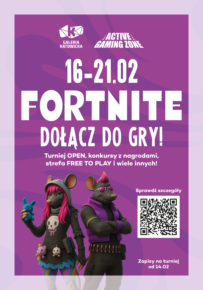 Od 16 do 21 lutego 2026 r. Galeria Katowicka zamieni się w pełne emocji centrum gamingu. Na poziomie 0 powstanie otwarta strefa Free to Play z komputerami PC, konsolami PS5 i simracingiem. Zwieńczeniem tygodnia będzie spotkanie z gwiazdami Team Active i turniej Fortnite z atrakcyjnymi nagrodami.