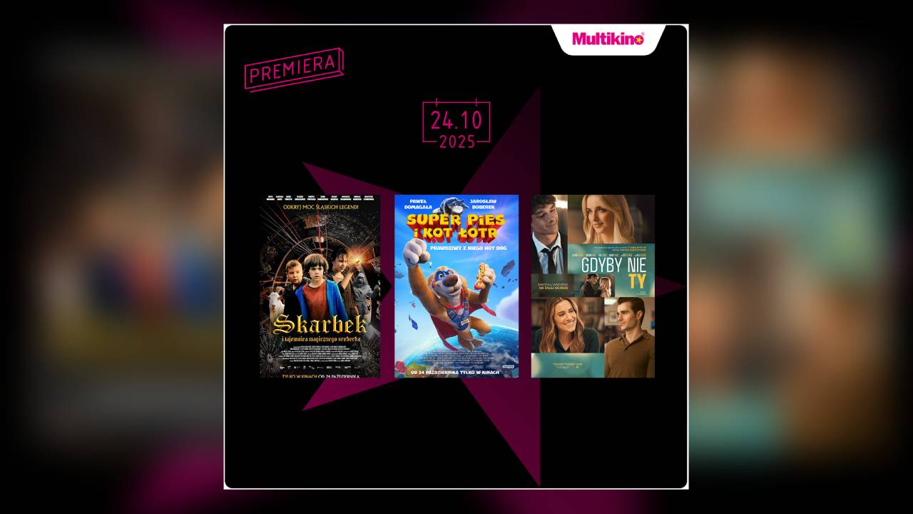Od 24 października na widzów we wszystkich kinach sieci Multikino będą czekały trzy premierowe propozycje – „Gdyby nie ty” zrealizowany na podstawie bestsellerowej powieści autorstwa Colleen Hoover oraz polski film fabularny „Skarbek i tajemnica magicznego sreberka” i kanadyjska animacja „Super pies i kot łotr”. Szczegółowy repertuar jest dostępny na stronie www.multikino.pl.