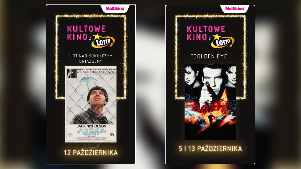 Październik w kinach sieci Multikino obfituje w pokazy kinowych klasyków w ramach cyklu „Kultowe Kino z Lottto”. Widzowie mogą zobaczyć 12 października z okazji 50. rocznicy od premiery na wielkie ekrany powróci „Lot nad kukułczym gniazdem” z Jackiem Nicholsonem, a 13 października „GoldenEye” z 1995 roku.