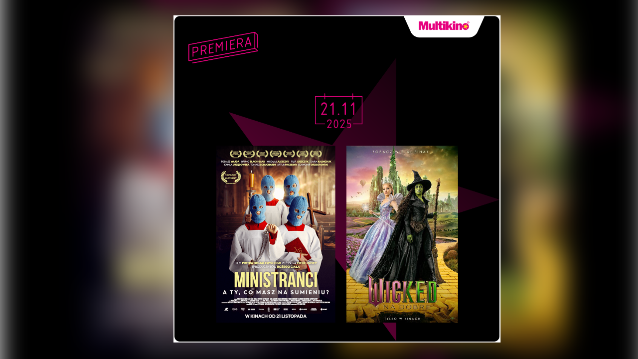 Od 21 listopada na widzów w kinach sieci Multikino będzie czekała druga część musicalu „Wicked: Na dobre” z Arianą Grande, film „Ministranci” balansujący między dramatem a czarnym humorem oraz „Rocznica” – pierwszy zrealizowany w Hollywood film Jana Komasy. Szczegółowy repertuar jest dostępny na stronie www.multikino.pl.