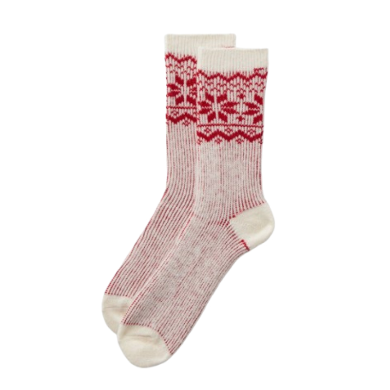Skarpety o długości 3/4 wykonane z ciepłej, prążkowanej tkaniny z nordyckim nadrukiem.